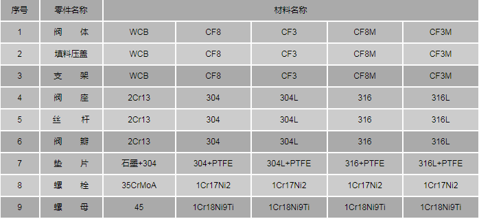 不銹鋼角式放料閥零件材料: