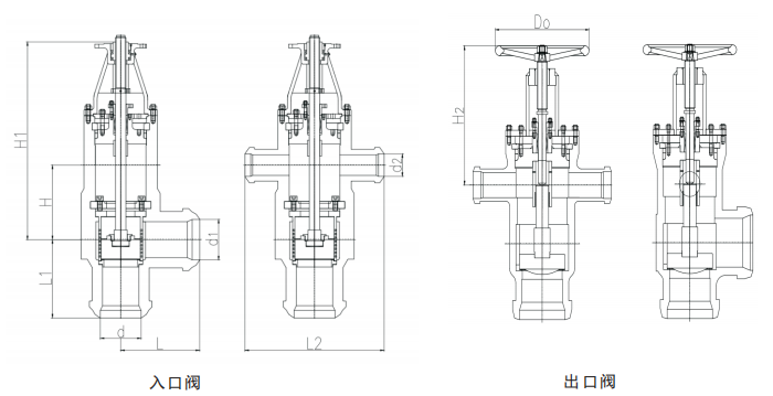 入口閥呈角式布置,外置活塞式結(jié)構(gòu),給水由側(cè)面引入,向下進(jìn)入高壓加熱器,閥上方由兩個(gè)旁路管道與出口的止回閥的旁路旁管相接。閥門有上下兩個(gè)密封面,高壓加熱器正常運(yùn)行時(shí),入口閥開啟,閥瓣上浮,與上密封面接觸。當(dāng)高壓加熱器發(fā)生故障時(shí),而不經(jīng)過高壓加熱器,使高壓加熱器解列。入口閥主要由上下兩個(gè)閥座,下閥座鑲焊在閥體上,上閥座與填料室是一體,裝在閥體上,可以拆卸。閥瓣上下兩個(gè)密封面均采用硬質(zhì)合金堆焊而成,閥桿表面經(jīng)氮化處理、抗擦傷、耐腐蝕。活塞缸為焊接件,缸體內(nèi)表面經(jīng)磷鎳鍍層處理,有良好的防腐及耐磨性。活塞由“O”型密封環(huán)密封,支架起支撐活塞缸及連接閥體的作用,上部有兩個(gè)焊接法蘭,其內(nèi)孔與活塞下腔連通。一個(gè)為進(jìn)冷凝水管道,一個(gè)為排冷凝水管道。