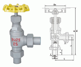 角式外螺紋氨用截止閥外形結(jié)構(gòu)圖: