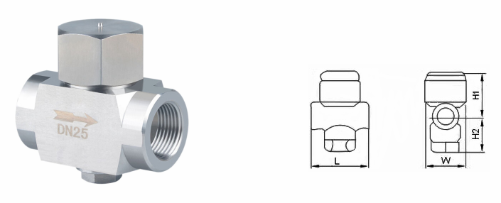不銹鋼熱動力蒸汽疏水閥外形結(jié)構(gòu)圖:
