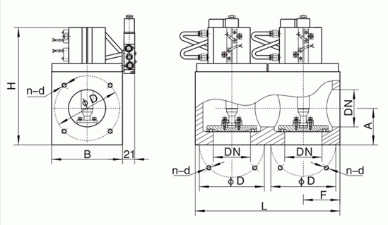 三通式氣動(dòng)高真空擋板閥連接尺寸: