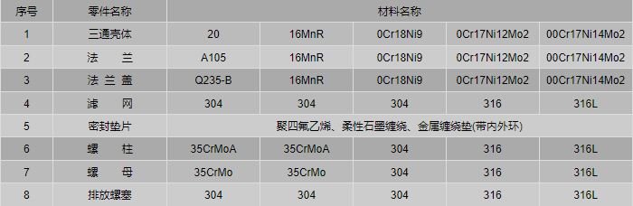 T型直流式過(guò)濾器是一種基本型直流式管道用三通T型過(guò)濾器,其主要由殼體、濾筒濾網(wǎng)、法蘭、法蘭蓋及緊固件等零部件構(gòu)成,該管道用三通過(guò)濾器是采用鋼制對(duì)焊無(wú)縫三通管件與帶頸對(duì)焊法蘭、帶頸平焊法蘭或板式平焊法蘭通過(guò)焊接工藝焊制而成的,我廠生產(chǎn)的該直流式T型過(guò)濾器嚴(yán)格按GB/T 14382-2008《管道用三通過(guò)濾器》標(biāo)準(zhǔn)進(jìn)行制造、試驗(yàn)及檢驗(yàn)。