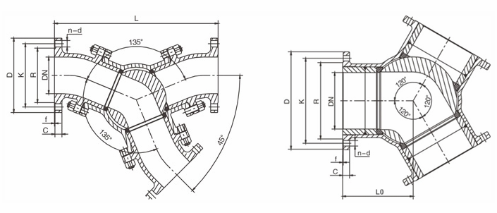 雙相鋼Y型三通球閥外形結(jié)構(gòu)圖: