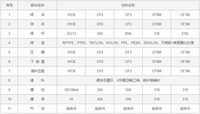 對(duì)夾式氣動(dòng)V型調(diào)節(jié)球閥零件材料:
