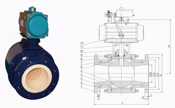 陶瓷氣動(dòng)球閥外形結(jié)構(gòu)圖: