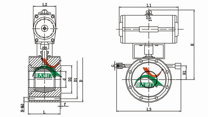 d | L | L1 | L2 | L3 | H | H1 | G | D | D1 | D2 | f | N-Md | |