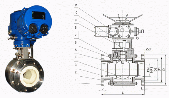 陶瓷電動(dòng)V型調(diào)節(jié)球閥結(jié)構(gòu)特點(diǎn):