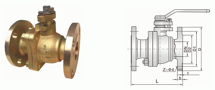 鎳鋁青銅球閥外形結(jié)構(gòu)圖: