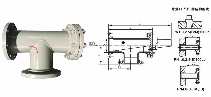 T型反折流式過濾器外形結(jié)構(gòu)圖: