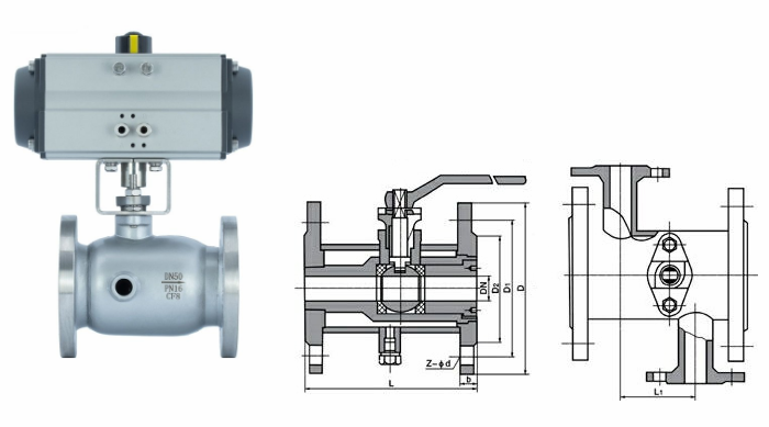 不銹鋼氣動(dòng)保溫球閥外形結(jié)構(gòu)圖: