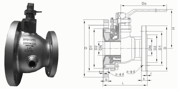 DN(mm) | L | D | D1 | D2 | Z-Φd | f | b | Do | H |