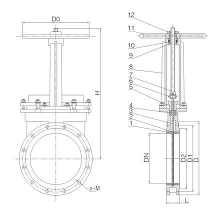陶瓷耐磨刀閘閥外形結(jié)構(gòu)圖: