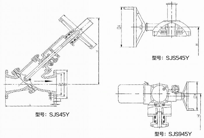 傘齒輪Y型料漿閥外形結(jié)構(gòu)圖: