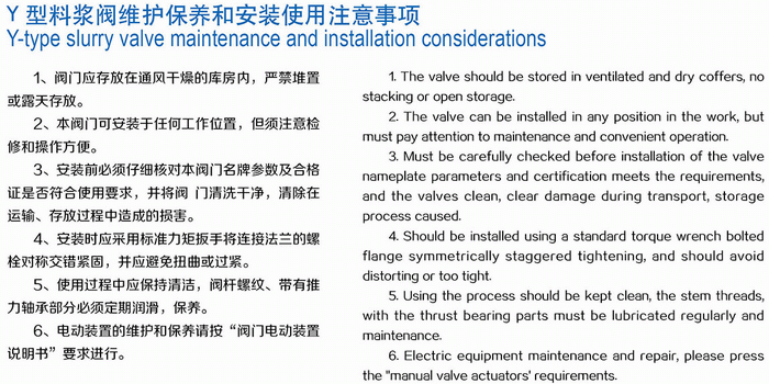 傘齒輪Y型料漿閥使用注意事項(xiàng):