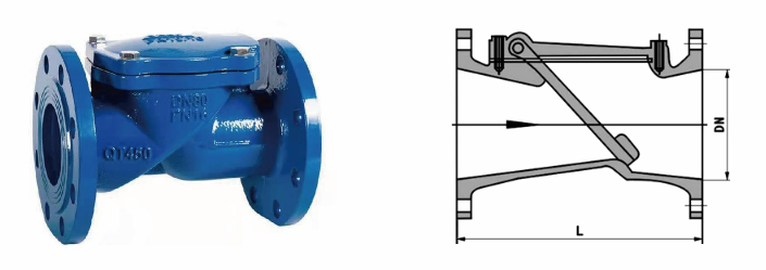 橡膠瓣止回閥外形結(jié)構(gòu)圖: