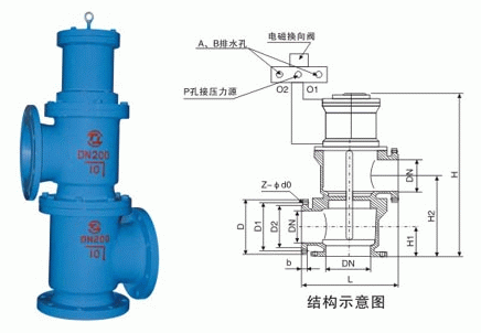 電磁液動(dòng)立式三通閥結(jié)構(gòu)特點(diǎn):