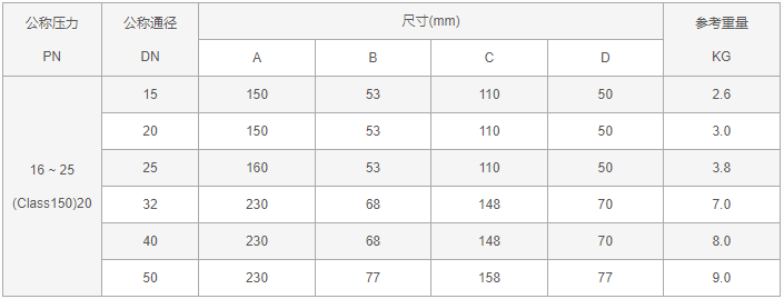 熱動力式Y(jié)型蒸汽疏水閥外形尺寸表: