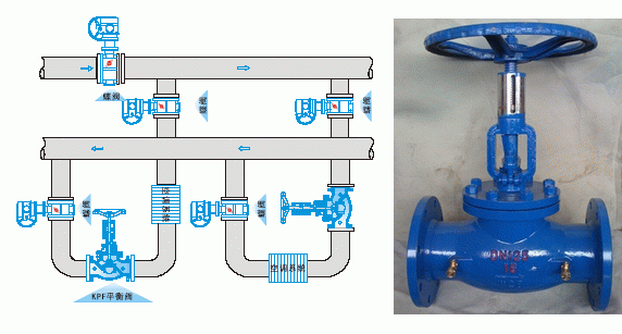 KPF型手動(dòng)流量平衡閥既可安裝在供水管上,也可以安裝在回水管上,一般我們建議安裝在回水管上,尤其對(duì)于高溫環(huán)路,為方便調(diào)試,更要裝在回水管上,安裝了平衡閥的供(回)水管不必再設(shè)截止閥。