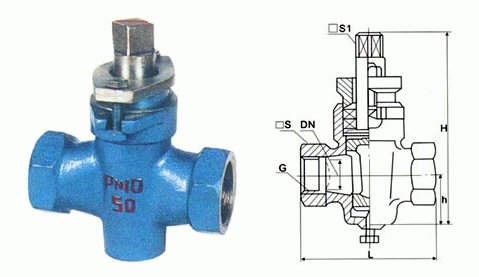 二通內螺紋不銹鋼旋塞閥外形結構圖: