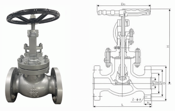 美標(biāo)鑄鋼截止閥外形結(jié)構(gòu)圖: