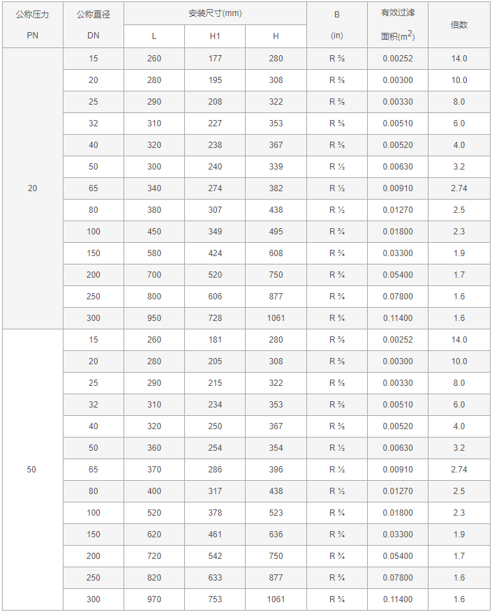 焊接Y型過(guò)濾器性能規(guī)范表: