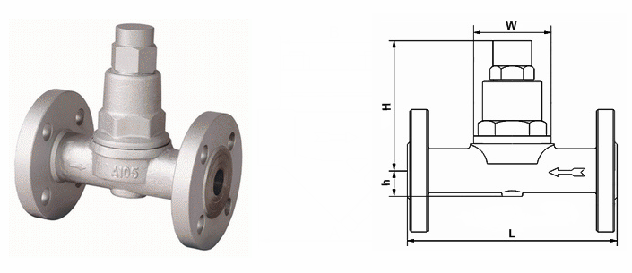 可調(diào)雙金屬片式疏水閥外形結(jié)構(gòu)圖:
