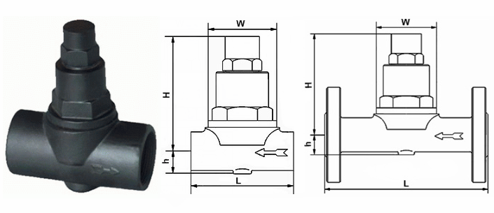 雙金屬片式疏水閥外形結(jié)構(gòu)圖:
