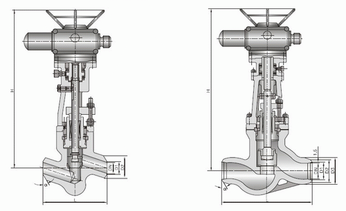 J961Y高溫高壓電動(dòng)截止閥外形結(jié)構(gòu)圖: