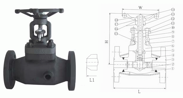 鍛鋼保溫閘閥外形結(jié)構(gòu)圖: