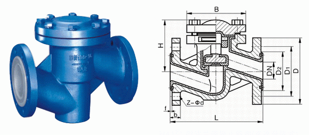 升降式襯氟止回閥   產(chǎn)品名稱: 升降式襯氟止回閥