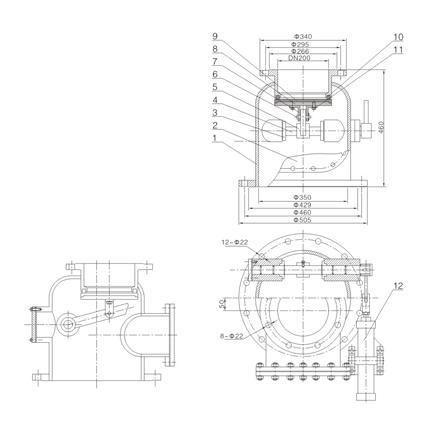 鐘罩式翻板進料閥外形結(jié)構(gòu)圖: