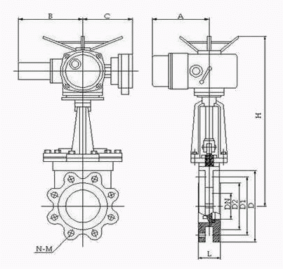 電動陶瓷刀閘閥外形結(jié)構(gòu)圖:
