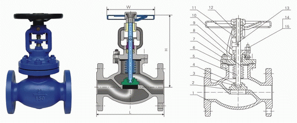 美標波紋管截止閥外形結(jié)構(gòu)圖:
