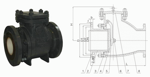 H44TC旋啟式陶瓷止回閥又稱陶瓷單向閥或陶瓷逆止閥,其作用是防止管路中的介質倒流,一般適用于含有固體顆粒的磨損性和沖刷性比較強的介質。旋啟式陶瓷止回閥的閥瓣和閥座及流體通道均內襯高性能增韌結構陶瓷材料,具有極好的耐磨損和耐沖刷性能。在管道中可任意角度安裝。