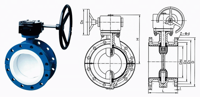 法蘭式襯氟蝶閥外形結(jié)構(gòu)圖: