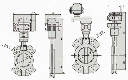 對夾式電動襯氟蝶閥外形結(jié)構(gòu)圖: