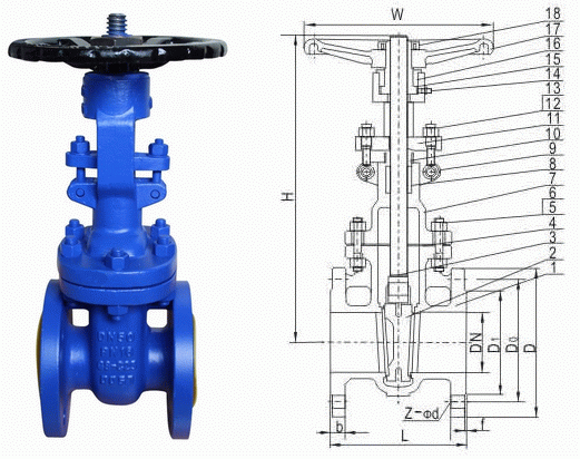 4德標(biāo)閘閥外形結(jié)構(gòu)圖:
