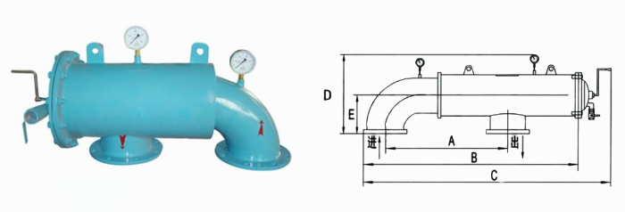 臥式手搖刷式過(guò)濾器外形結(jié)構(gòu)圖: