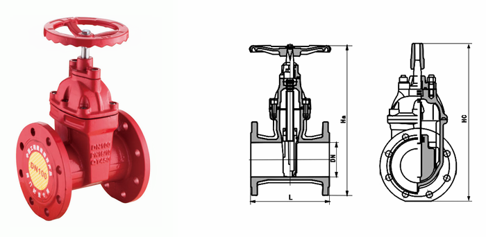 消防暗桿閘閥外形結(jié)構(gòu)圖: