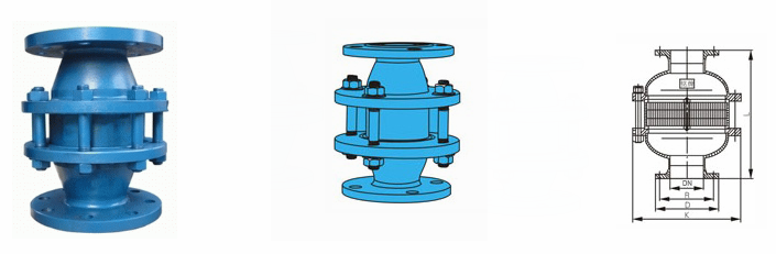 防爆轟型阻火器是一種由上下兩個外殼、阻火芯及附件等構成,用于阻止聲速和超聲速傳播火焰通過和向外蔓延的石油氣體管道阻火器,其外殼由碳鋼、不銹鋼、鋁合金或其他材料鑄造或焊制而成,并有足夠的強度以防微爆產(chǎn)生的沖擊壓力,兩個外殼中間設置阻火芯,其中芯件是用薄不銹鋼波紋帶與平帶共同卷制成盤狀,而且表面壓有一個十字結構的支架借以增強芯件的牢固性,避免被點燃的介質所產(chǎn)生的沖擊波沖散。本產(chǎn)品能阻止以激波壓縮方式,相對于前方介質以超音速傳播的燃燒反應形式的爆轟現(xiàn)象。