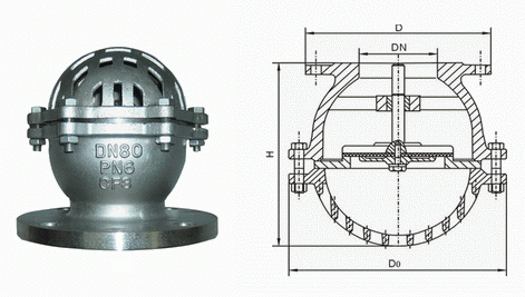 底閥通常安裝于水面以下,而水上式底閥則安裝于水面以上,它是老式底閥的更新?lián)Q代產(chǎn)品,是理想的引水設(shè)備而且亦可取代真空泵及抽真空裝置。該底閥設(shè)計(jì)合理,制造工藝先進(jìn),安裝、使用、檢修方便。并具有摩擦阻力小,使用壽命長(zhǎng),節(jié)能等優(yōu)點(diǎn),廣泛適用于石化、化工、紡織、印染、冶金、礦山、排灌等行業(yè)的水泵配套設(shè)施。