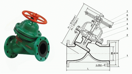 直流式法蘭隔膜閥外形結(jié)構(gòu)圖: