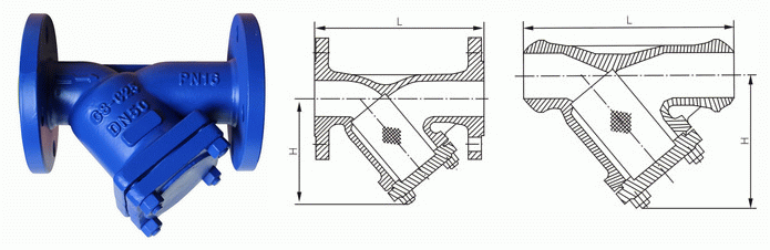 德標Y型法蘭過濾器外形結(jié)構(gòu)圖: