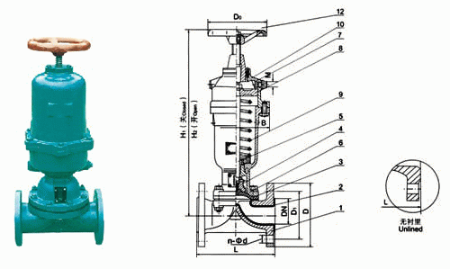 3視膠隔膜閥的閥體內(nèi)腔表面視復(fù)有廳供選擇的多種橡膠。因此具有優(yōu)越的耐腐蝕的特點(diǎn)。