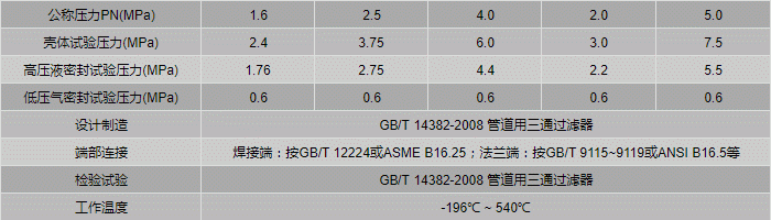 承插焊Y型過(guò)濾器性能規(guī)范表: