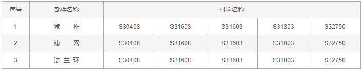 法蘭平頂錐形過(guò)濾器零件材料: