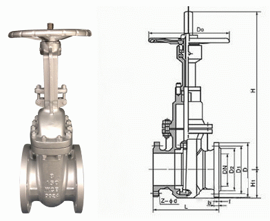 美標手動閘閥外形結(jié)構(gòu)圖: