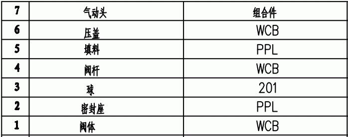 氣動放料球閥零件材料: