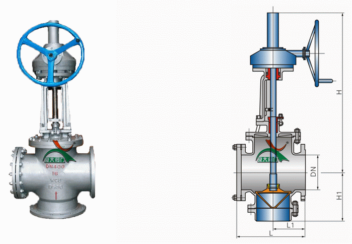 耐磨角式放料閥外形結(jié)構(gòu)圖: