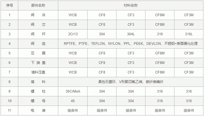電動V型切斷球閥零件材料: